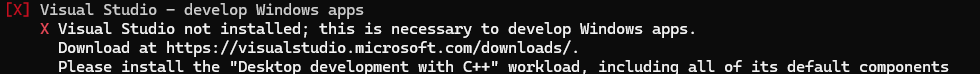 X Visual Studio not installed; this is necessary to develop Windows apps.